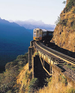 Viajar de trem pelas montanhas, da serra do mar, por uma estrada inaugurada em 1885 e que até hoje é orgulho da engenharia ou...