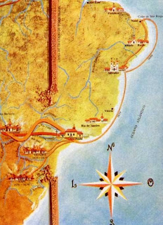 Portugueses e espanhóis percorreram mares e conquistaram terras onde já viviam outras pessoas. Não reconheceram, porém, os direitos desses povos e  resolveram dividir entre si as terras descobertas e por descobrir. Em 1494, assinaram o Tratado de Tordesilhas. Esse tratado traçava uma linha imaginária que dividia o mundo entre Portugal e Espanha. Foi nesse panorama de viagens e conquistas que, em 22 de abril de 1500, chegou ao Brasil o navegante português Pedro Álvares Cabral e sua esquadra.