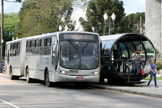 Os ônibus biarticulados transportam até 270 passageiros e param em estações-tubo.